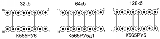 Схема допускала установку трёх типов микросхем ОЗУ: КР565РУ5, КР565РУ5Д1 (отбраковка объёмом 32 Кбит) и КР565РУ6. При этом общий объём памяти получался 128, 64 или 32 кб.