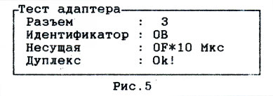 С помощью стрелок можно выбрать один из возможных режимов. Подтверждение выбора осуществляется нажатием клавиши "ВВОД". Для начала работы необходимо указать разъём, в котором стоит модуль локальной сети (адаптер). Эта операция выполняется в пункте "Тест адаптера", который всегда должен выполняться первым.