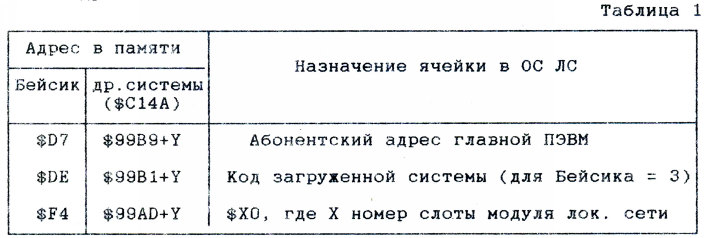 Следует иметь в виду, что ОС ЛС использует определённые ячейки памяти для своей работы (см. табл.1). При написании пользовательских программ следует иметь в виду, что некорректное использование этих ячеек может привести к неверной работе ОС ЛС.